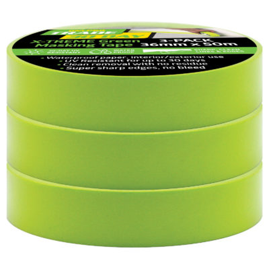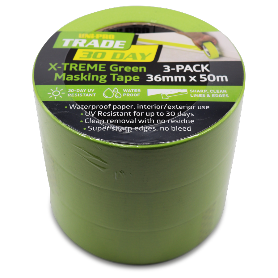 UNi-PRO Trade X-Treme Green 30-Day Masking Tape offers reliable paint protection.
