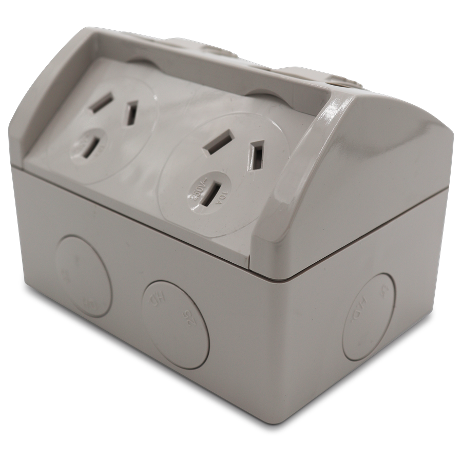 The Weatherproof Double GPO (General Purpose Outlet) 10A is a robust and protected power distribution unit.